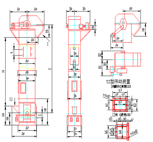 TH型斗式提升機結(jié)構(gòu)型式圖如下