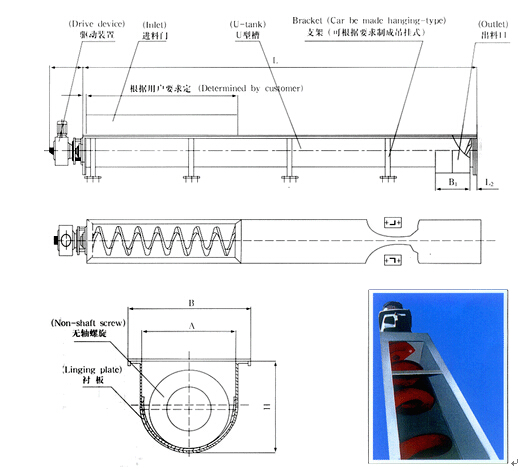6、WLS型無(wú)軸螺旋輸送機(jī)進(jìn)、出料口:有方形和圓形兩種,用戶無(wú)要求時(shí)按方形的供貨。