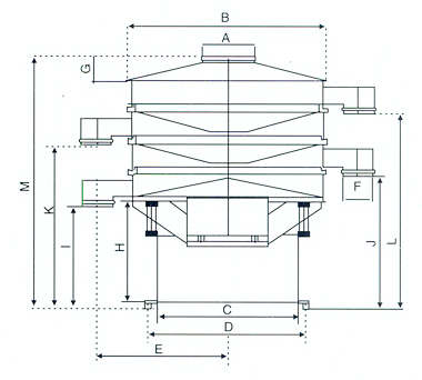 標(biāo)準(zhǔn)旋振篩/三次元振動篩分過濾機尺寸表: