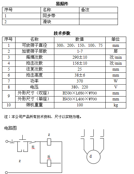 電機(jī)帶動(dòng)齒輪通過同步帶傳動(dòng)到主軸上,經(jīng)齒輪變速后主軸按要求的轉(zhuǎn)速轉(zhuǎn)動(dòng),主軸帶動(dòng)偏心輪使滑板做往復(fù)運(yùn)動(dòng),帶動(dòng)安裝在滑板托盤中的試驗(yàn)篩左右搖動(dòng),同時(shí)主軸帶動(dòng)頂桿齒輪轉(zhuǎn)動(dòng),變速后頂桿齒輪通過凸輪頂擊頂桿,頂桿使拍錘上下排擠試驗(yàn)篩上蓋,使得試驗(yàn)篩、分樣篩中的物料往復(fù)和上下振動(dòng),使小于試驗(yàn)篩篩面網(wǎng)孔的物料顆粒篩分進(jìn)下層試驗(yàn)篩,如此層層篩選,使每層試驗(yàn)篩內(nèi)只留相同粒度的物料。達(dá)到不同粒度的分離并確定此物料的粒度組成。